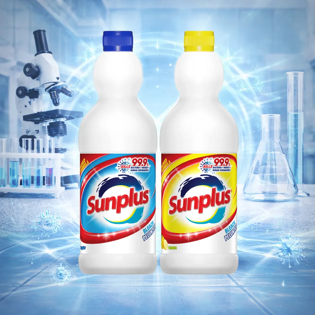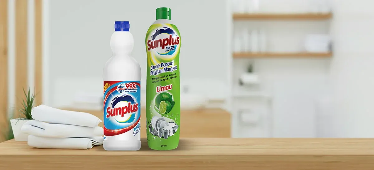 Sunplus dishwashing liquid and bleach are tough on grease with their powerful stain removing performance and 99.9% antibacterial strength.